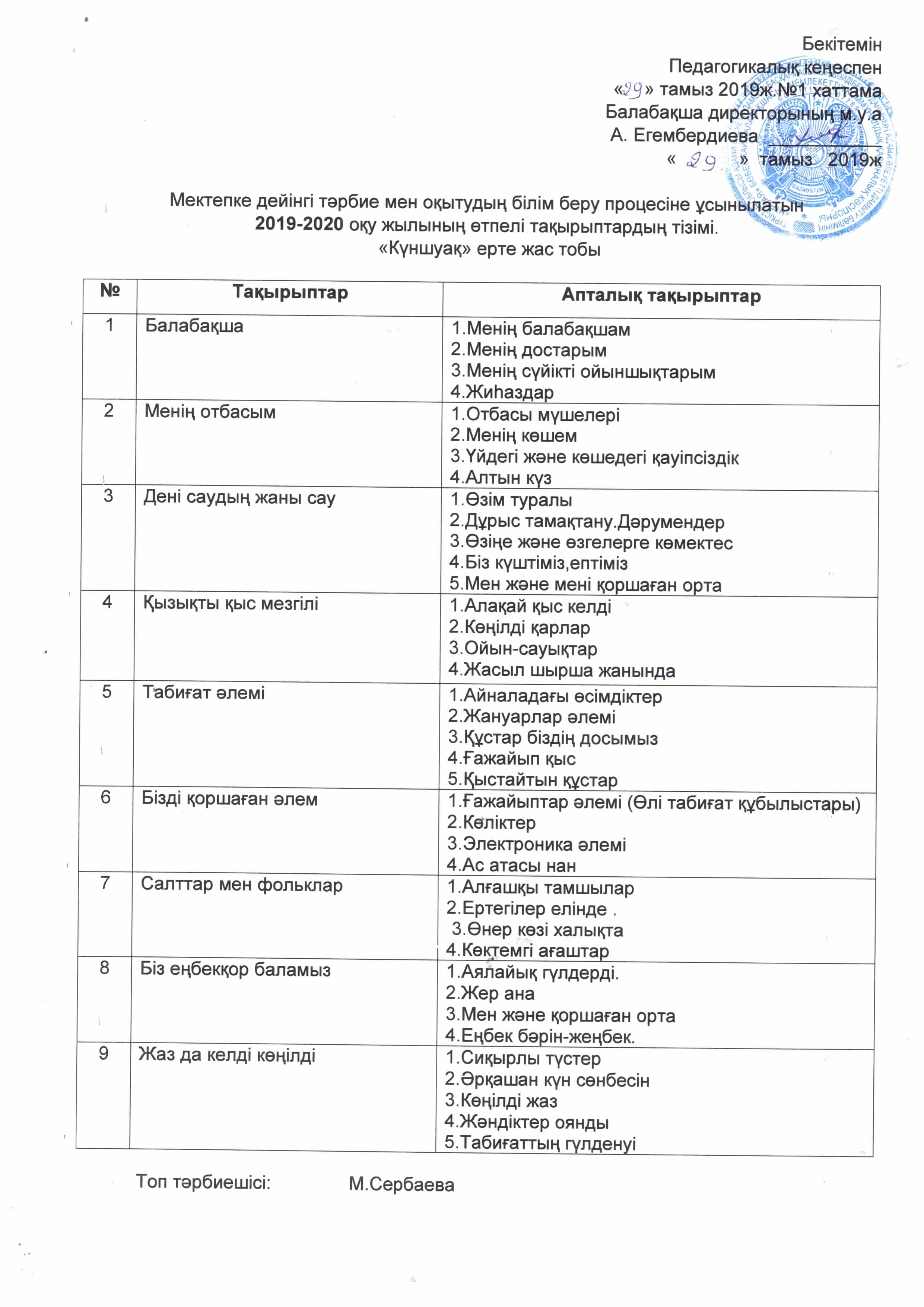 | 3 | Күншуақ ерте жас тобы өтпелі тақырып 19/20 |
