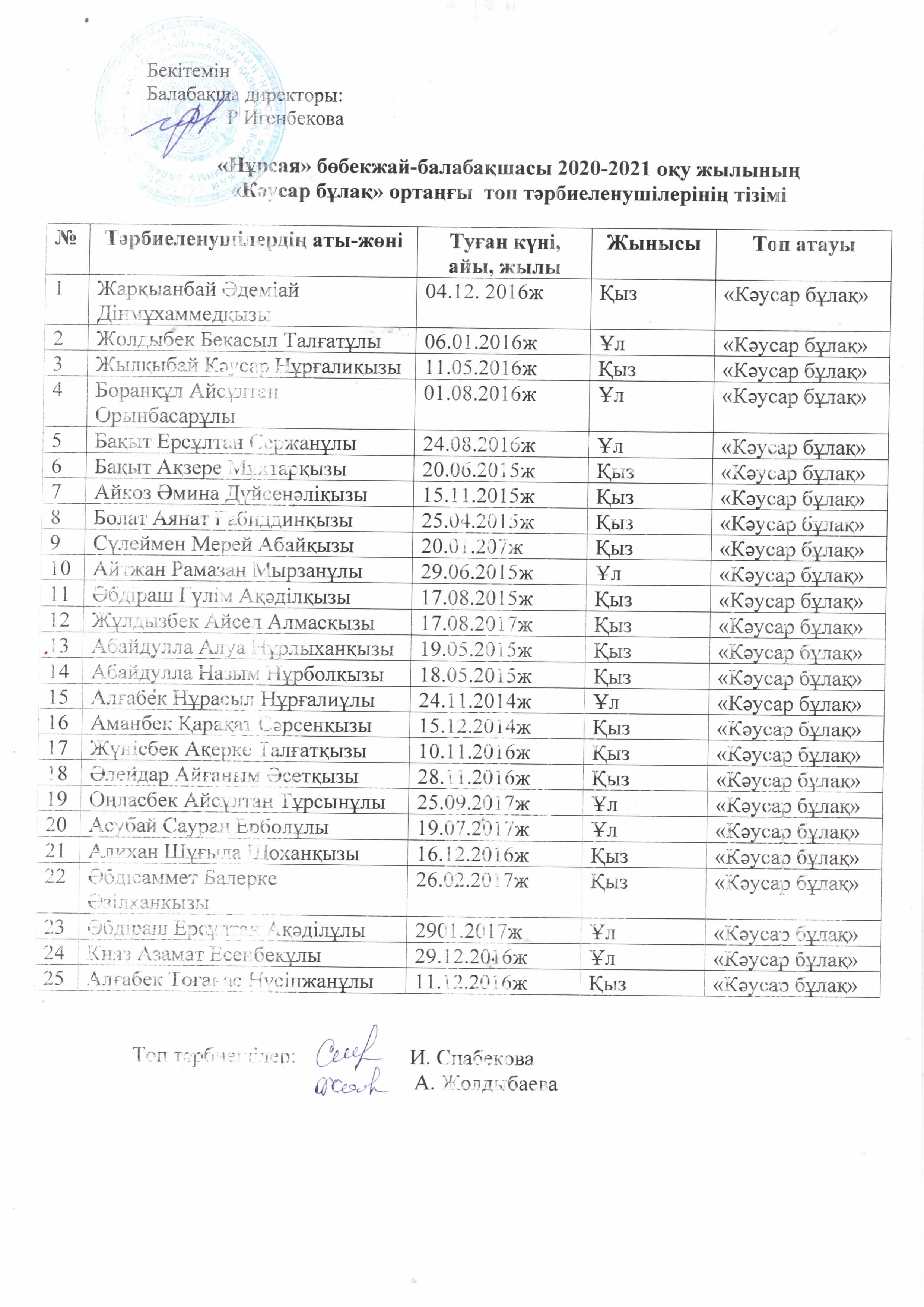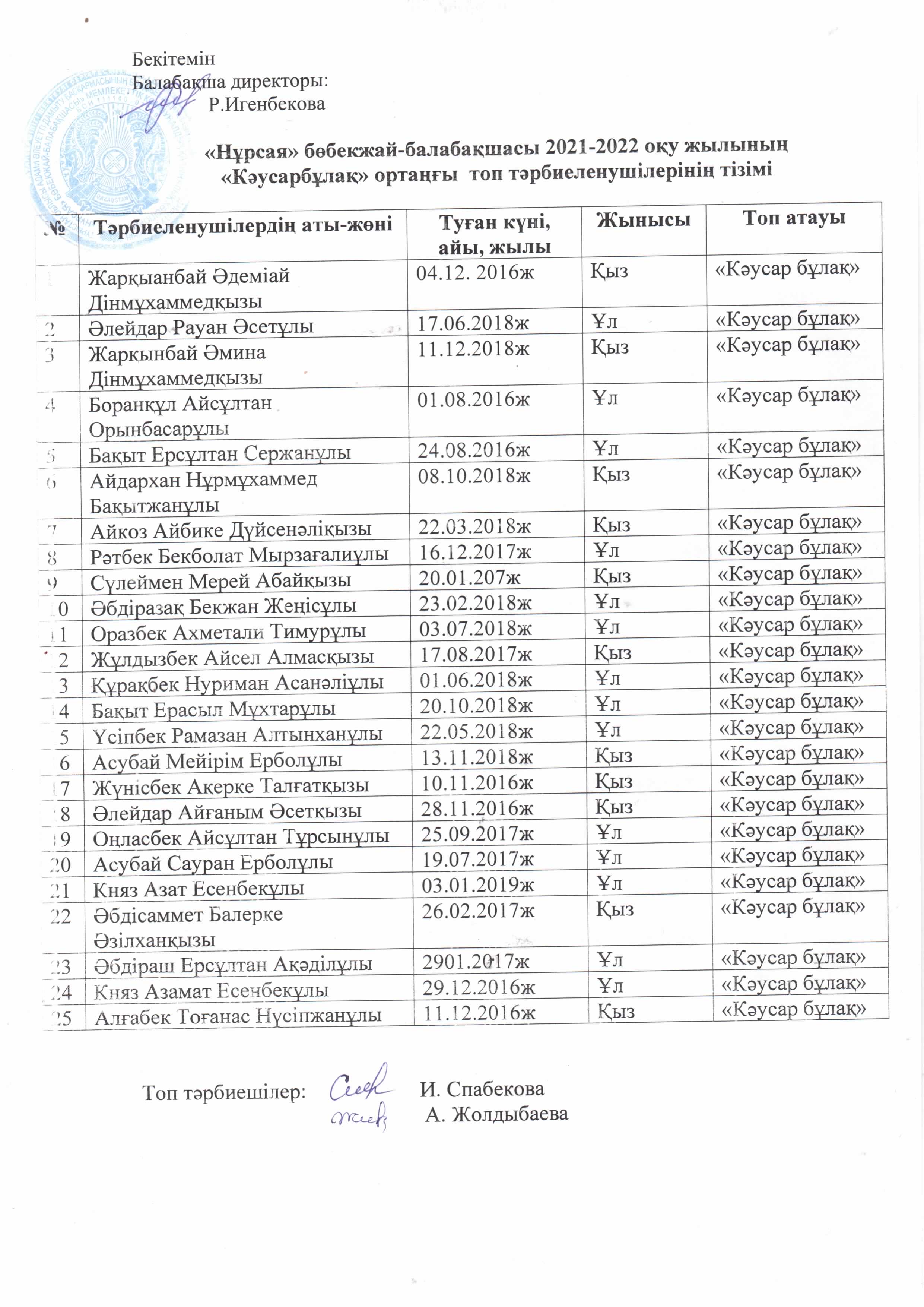 | 2 | 20-21 Кәусар бұлақ ортаңғы тізім | |