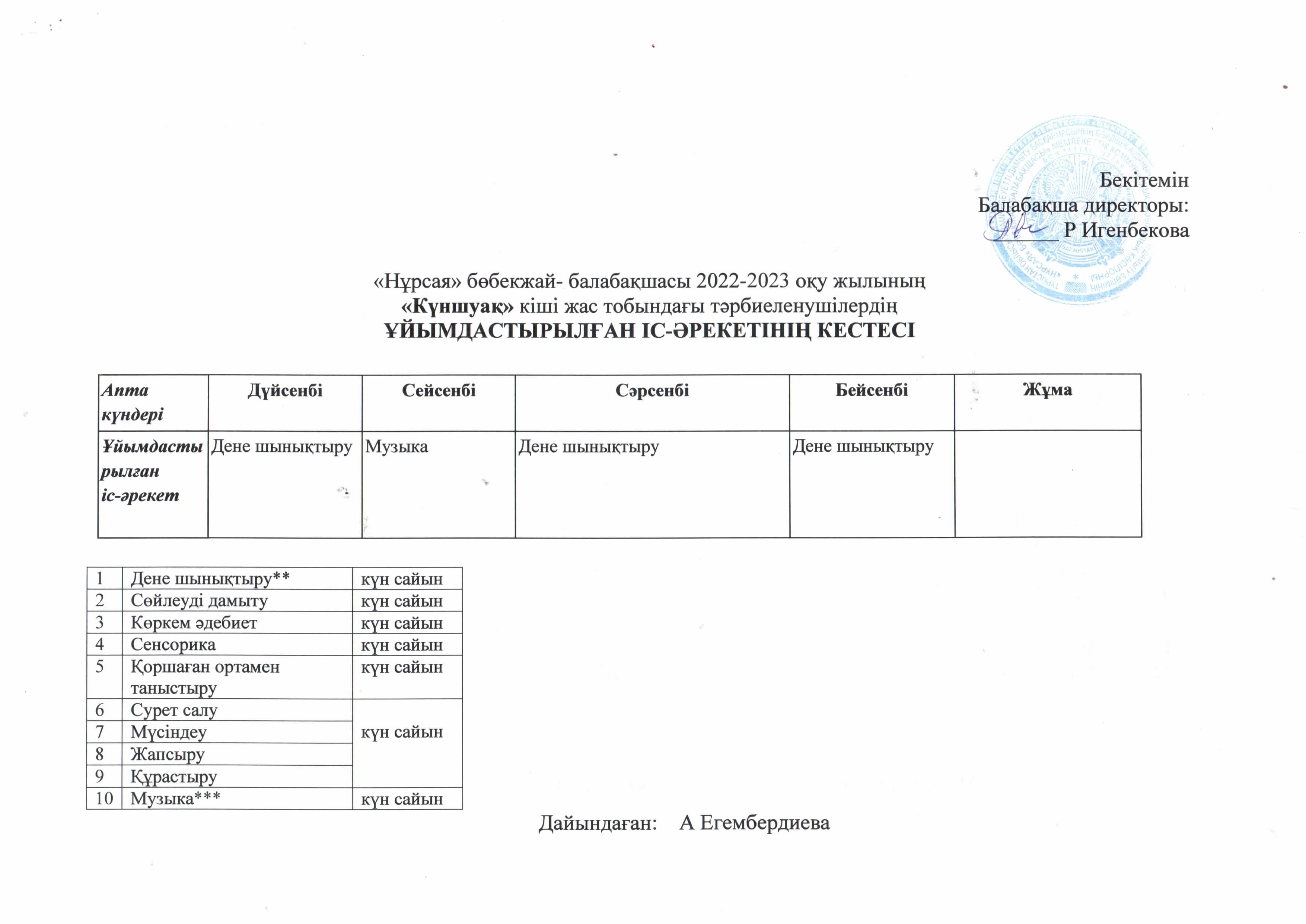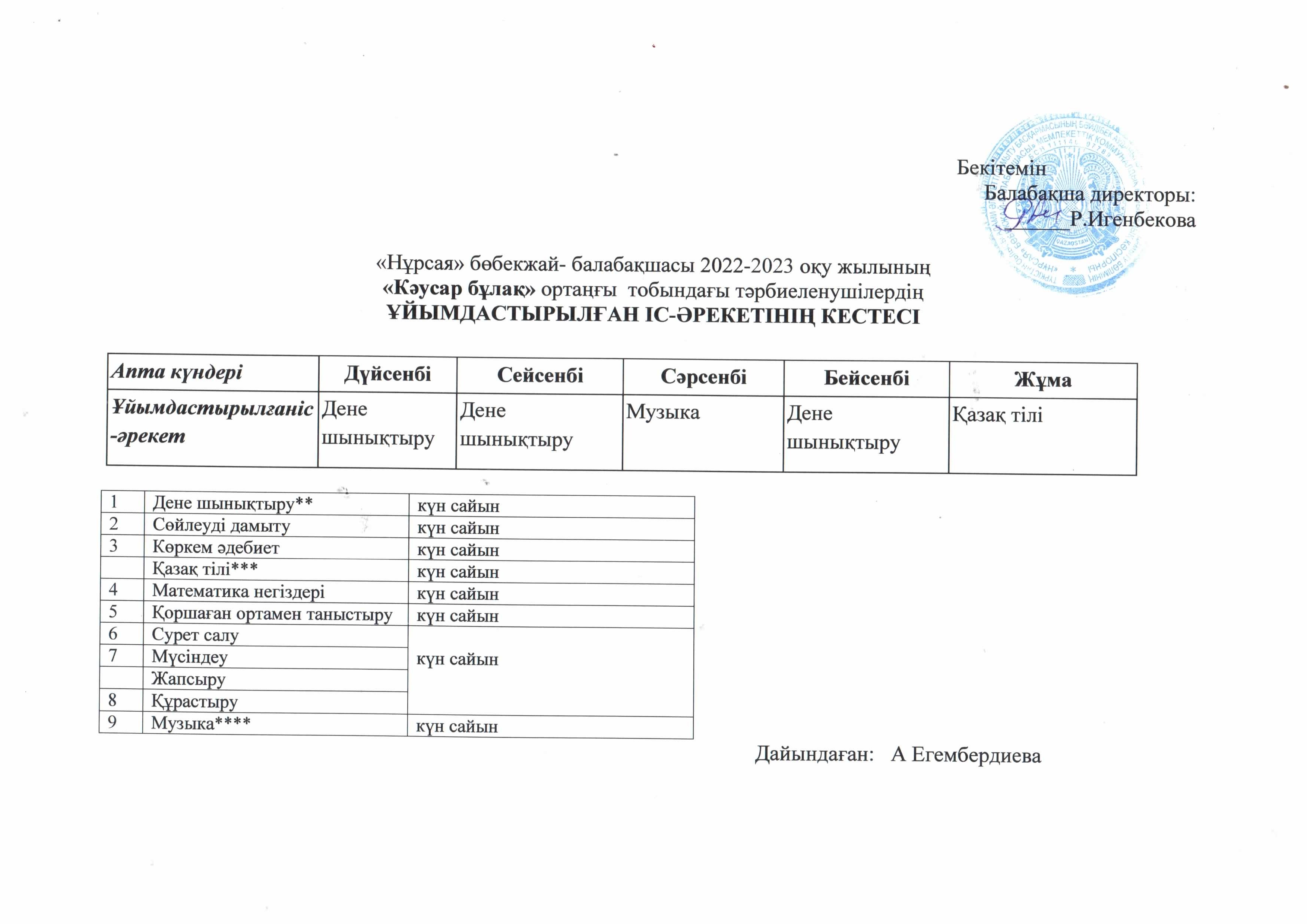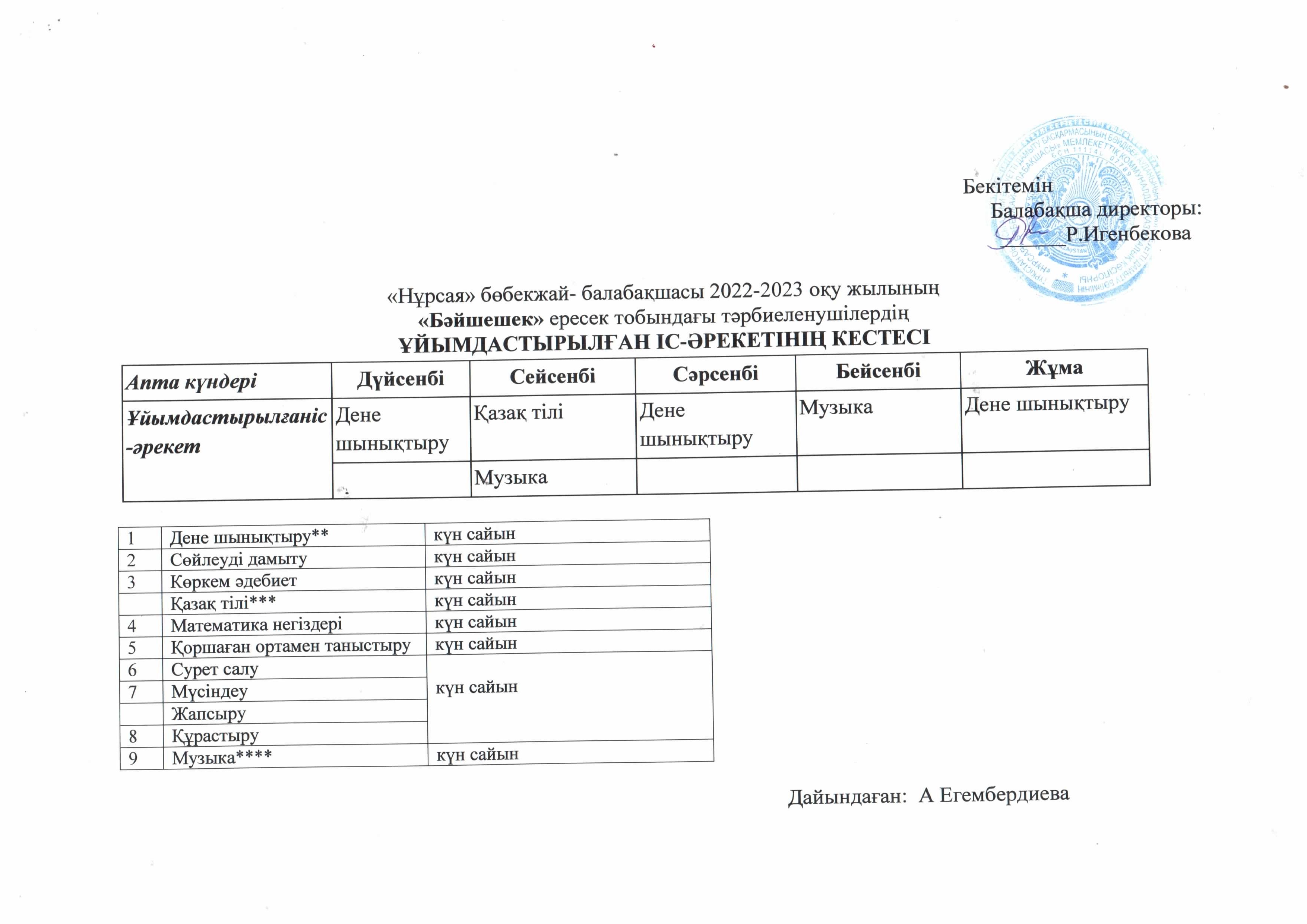 Оқу кестесі ортаңғы топ